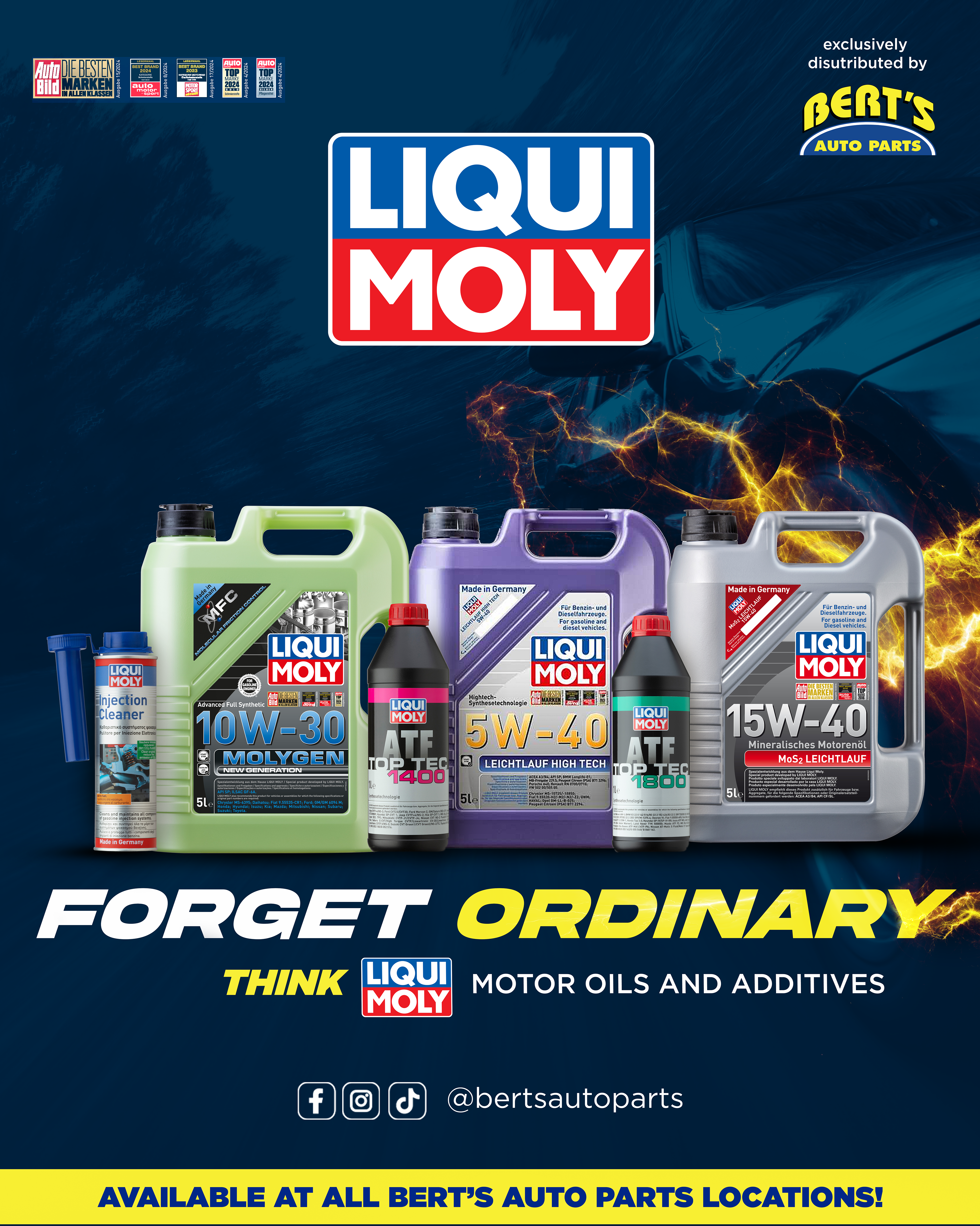 Forget Ordinary was a multi-channel promotional campaign developed for Bert's Auto Parts in partnership with Liqui Moly, designed to reposition everyday vehicle maintenance as a high-performance choice.